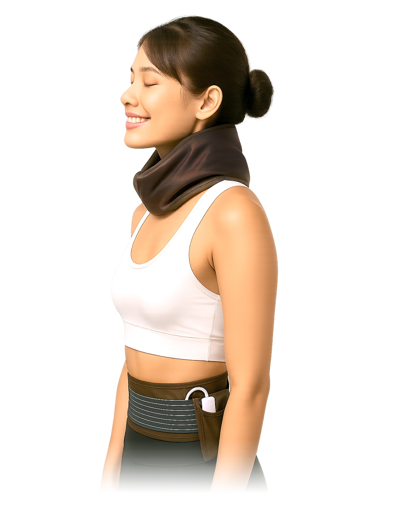 辦公桌長期久坐,3C重度使用族群,「黑陶石智能頸帶」讓您工作和休閒都可輕鬆使用、熱熱敷。