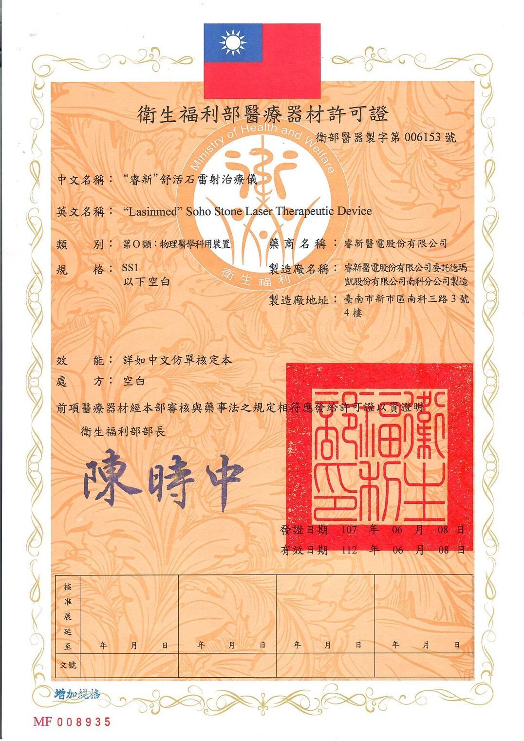 醫 療 器 材 證 書
