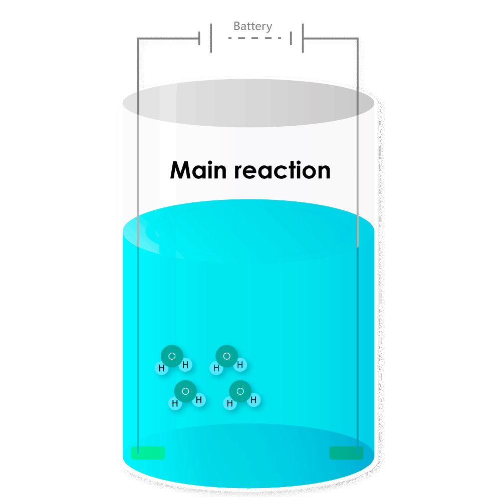 The main reaction of water electrolysis is very few hydrogen gas, but with two side reactions – chlorine and ozone, which are harmful to health. In order to increase the volume of hydrogen, some companies add NaOH or KOH diluent to facilitates electric conduction, but those chemicals are volatile and depress the purity of hydrogen dramatically.