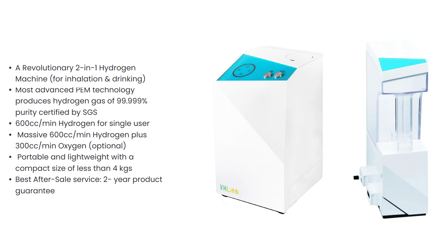 - A revolutionary Hydrogen machine completes the Hydrogen therapy of combining Hydrogen gas inhalation and drinking hydrogen infused water simultaneously