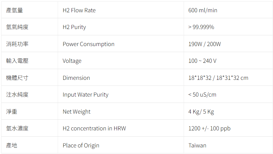 • 製作1.2公升的氫水只要2分鐘,含氫量高達1200ppb