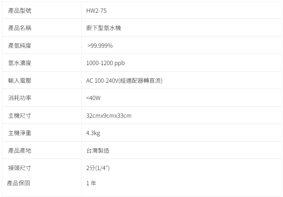 - 微電腦自動控制,穩定輸出氫水濃度1,000~1,200ppb